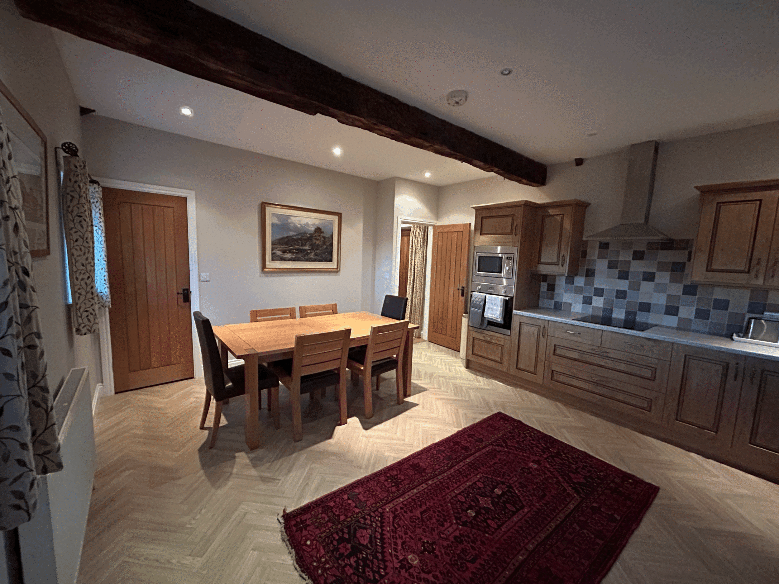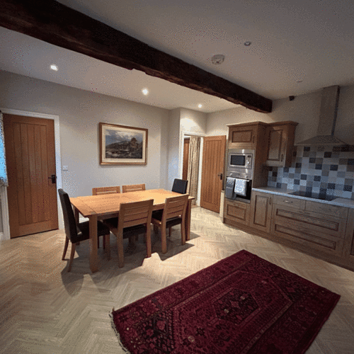 Our Old Banqueting Hall has been recently refreshed. It consists of 2 double rooms, and 1 twin, sleeping 6 in total. One of the double's has a en-suite, there's a family bathroom, a large living room and a beautiful kitchen.
